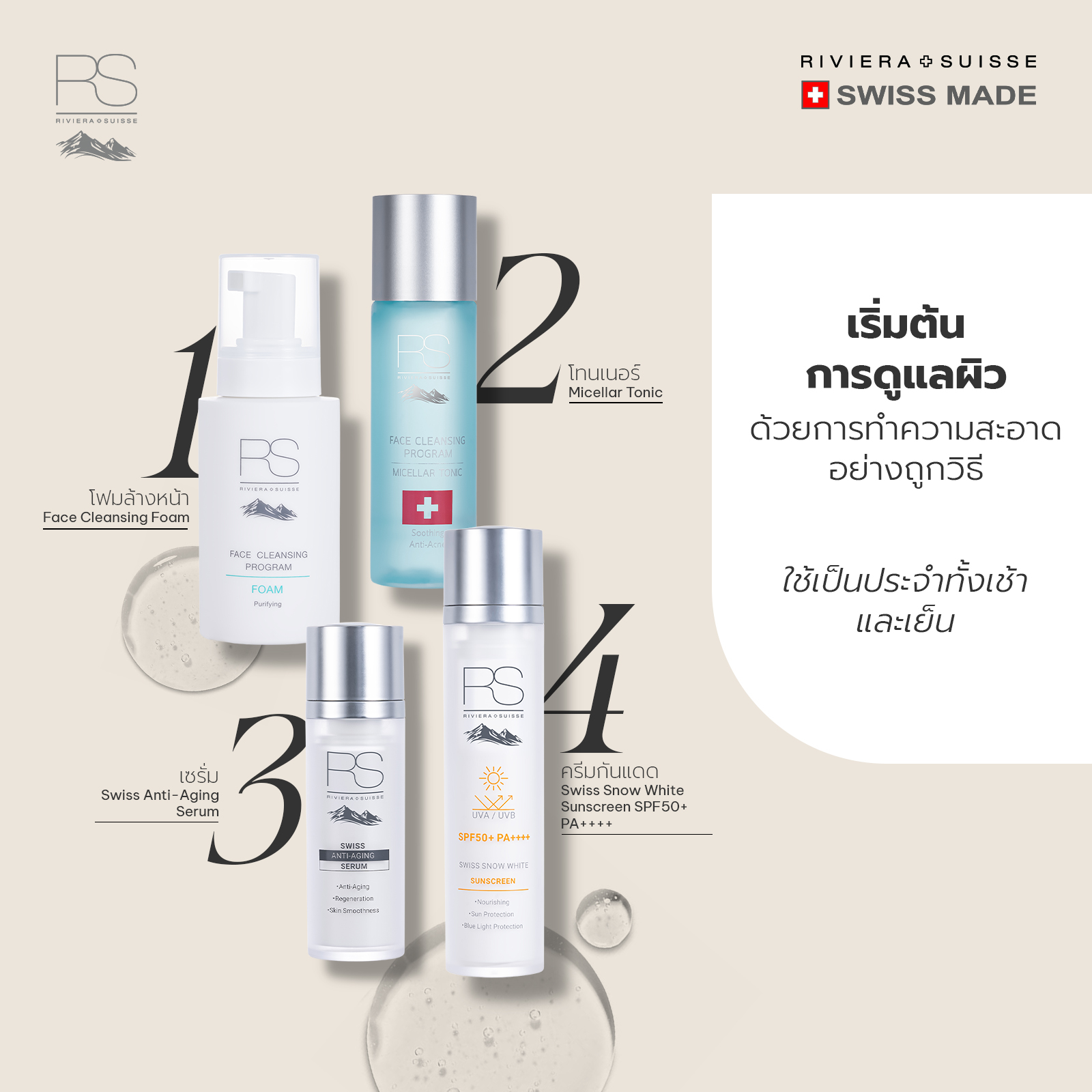 • ทำความสะอาดผิวด้วยโฟมเสร็จแล้ว ตามด้วย Riviera Suisse Micellar Tonic เพื่อปลอบประโลมผิวอีกขั้น