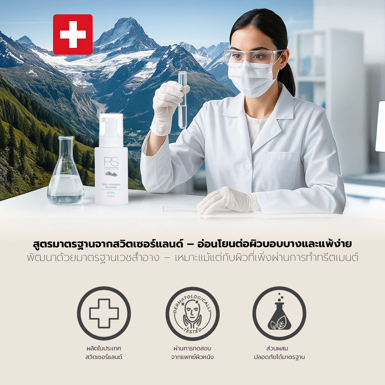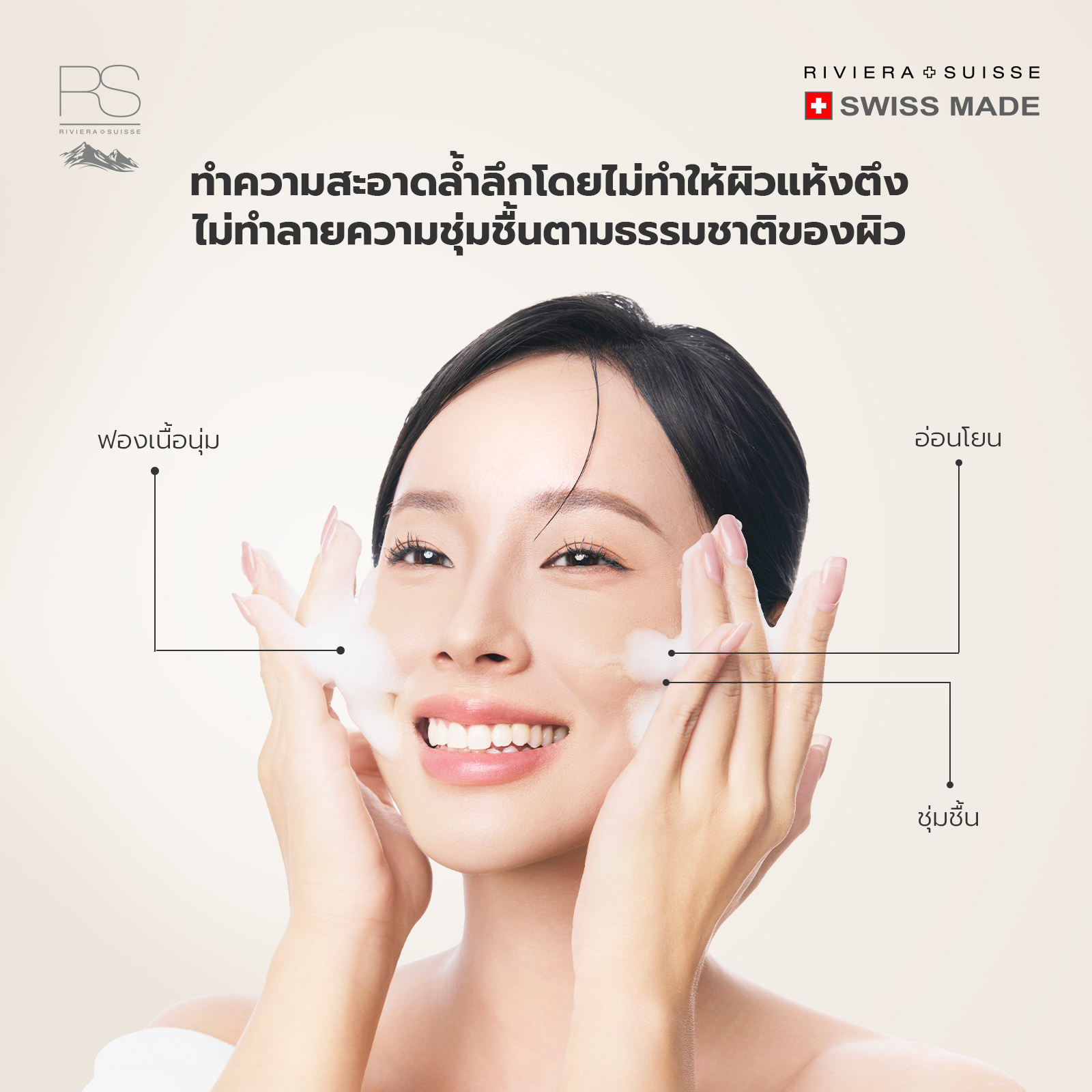 โฟมล้างหน้าสูตรอ่อนโยนจากสวิตเซอร์แลนด์พร้อมสารออกฤทธิ์ AMISOFT® CS-22, ELFAN® AT 84 และ TEGO® Betain F 50 ช่วยทำความสะอาดอย่างมีประสิทธิภาพแต่อ่อนโยน รักษาความชุ่มชื้นและไม่ทำให้ผิวแห้งตึง เหมาะสำหรับทุกสภาพผิว รวมถึงผิวแพ้ง่าย